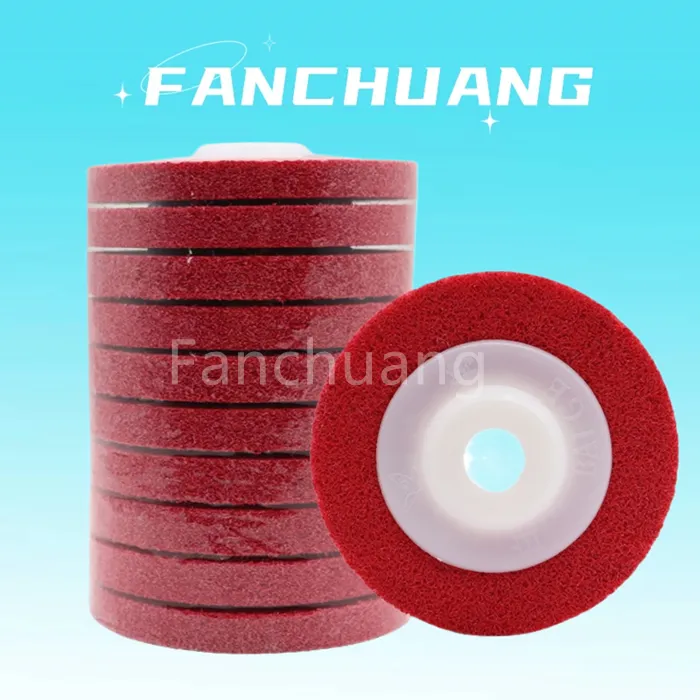 عجلة الكاشطة المصنوعة من النايلون من Fanchuang مناسبة لمعالجة سطح مختلف قطع العمل المعدنية، وطحن وتلميع الأجهزة المعمارية، وأجهزة المطبخ، والسيراميك، والحجر، والأعمال الخشبية، والحرف الراتنجية، وقطع غيار السيارات، وما إلى ذلك.